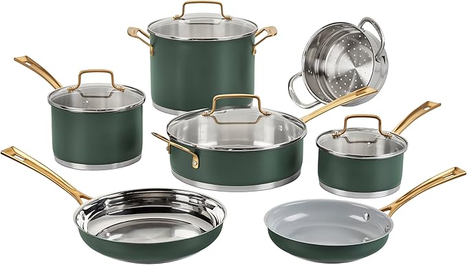 Upgrade your kitchen setup with the Cuisinart 12-Piece MultiClad Pro cookware set, crafted to deliver professional performance. Designed with high-quality materials, it offers versatility and durability across various cooking tasks.