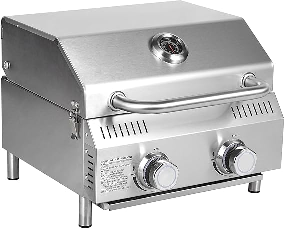 11. Bestfire Tabletop Gas Grill 2 Burners, 20,000 BTUs Stainless Steel