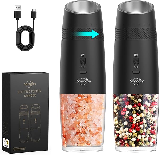 9. Sangcon Gravity Electric Salt and Pepper Grinder Set RECHARGEABLE Automatic